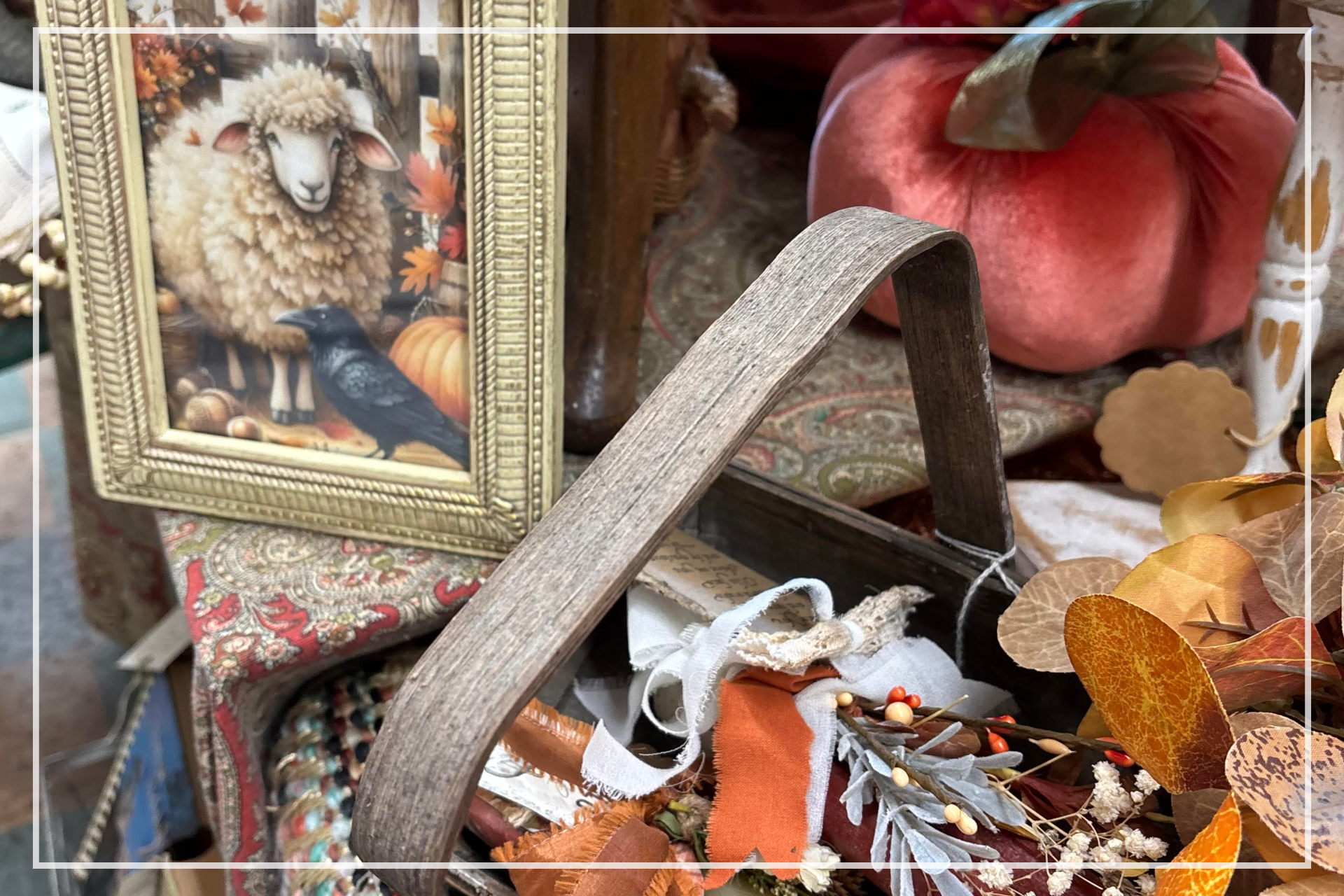 Start with the feeling you want your booth to give. For Southern Ivy Emporium, that’s often vintage charm meets cozy Southern farmhouse — a blend of aged patina, greenery, and twinkle lights.